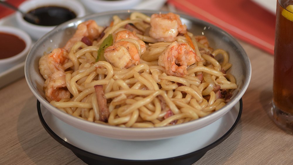 Cerdo ahumado, camarón, pollo, tallarín de la casa, salsa soya, salsa de ostión, cebollín, apio, zanahoria $295